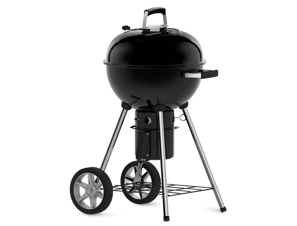 Základný gril na drevené uhlie s grilovacím roštom s priemerom 47 cm z nerezovej ocele odolnej proti korózii. Má pevnú a stabilnú konštrukciu založenú na štyroch nohách, z ktorých dve sú osadené kolieskami z tvrdého plastu, s ktorými hravo zvládne aj pohyb po nespevnenom teréne. Poklop grilu aj kotol je z porcelánom smaltovanej ocele. Gril je vybavený teplomerom, ľahko vyberateľným popolníkom, praktickým madlom, držiakom na zavesenie veka a mrežou na uloženie grilovacích pomôcok.