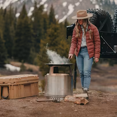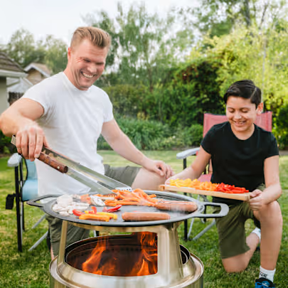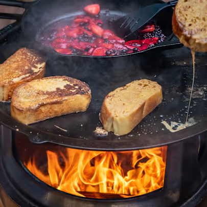 Grilujte na otvorenom ohni na táborisku alebo priamo za vašimi dverami s sadou na grilovanie z liatiny. Predpripravená liatinové grilovacie rošty/dosky a woky akumulujú teplo pre dokonalé opečenie nad bezdymovým ohniskom – či už ide o šťavnatý steak alebo grilovanú zeleninu s náznakom ohňa