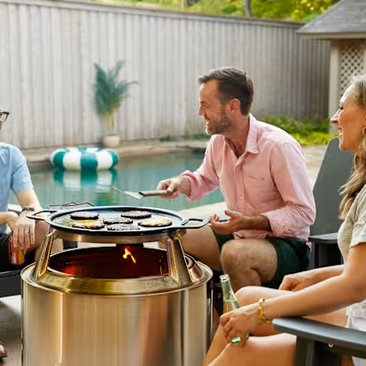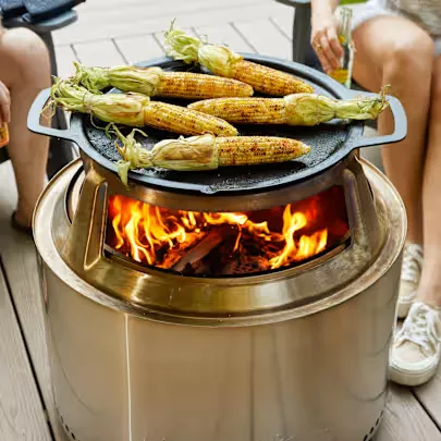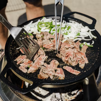 Grilujte na otvorenom ohni na táborisku alebo priamo za vašimi dverami s sadou na grilovanie z liatiny. Predpripravená liatinové grilovacie rošty/dosky a woky akumulujú teplo pre dokonalé opečenie nad bezdymovým ohniskom – či už ide o šťavnatý steak alebo grilovanú zeleninu s náznakom ohňa.