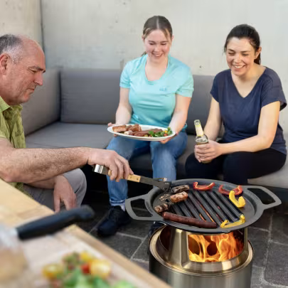 Liatinový rošt, ktorý je na mieru tvarovaný pre systém varenia pri ohni a je spojený s nadstavcom, široký rošt na rovnomerný ohrev pre dokonale opečené steaky a zeleninu. Rošt a Nadstavec sú jednou zo súčastí systému varenia ohňa a pre bezpečný a úplný zážitok sa musia používať s ohniskom.