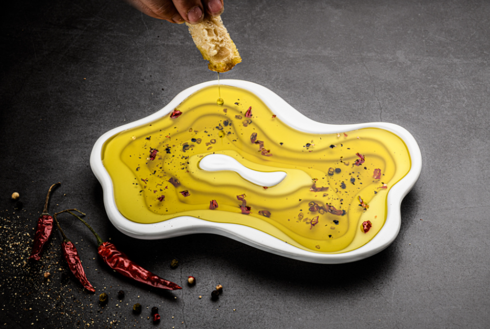 Olivový olej so soľou a čerstvou bagetou v miske Tree. Život si treba vychutnať!
